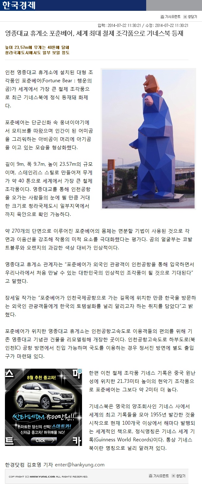 [Çѱ¹°æÁ¦] ¿µÁ¾´ë±³ ÈÞ°Ô¼Ò Æ÷Ãả¾î, ¼¼°è ÃÖ´ë öÁ¦ Á¶°¢Ç°À¸·Î ±â³×½ººÏ µîÀç