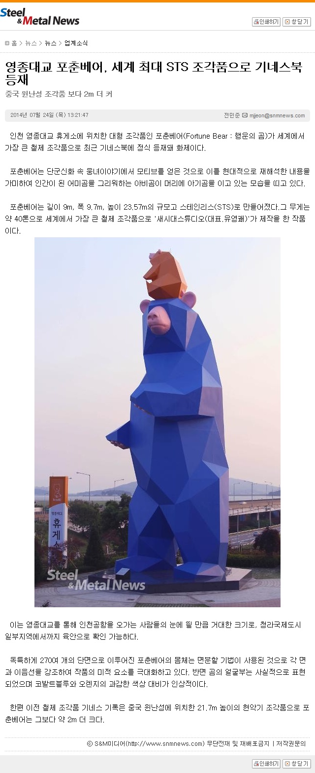 [½ºÆ¿¾Ø¸ÞÅ»´º½º] ¿µÁ¾´ë±³ Æ÷Ãả¾î, ¼¼°è ÃÖ´ë STS Á¶°¢Ç°À¸·Î ±â³×½ººÏ µîÀç