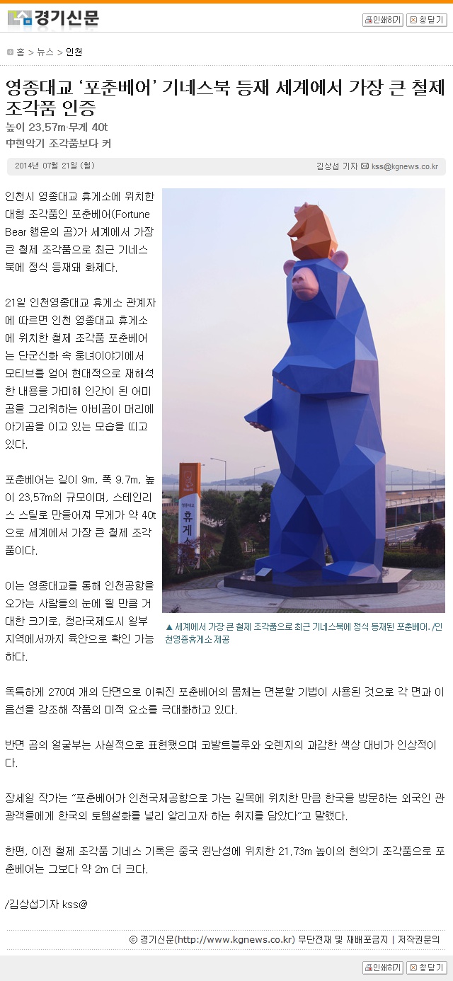 [°æ±â½Å¹®] ¿µÁ¾´ë±³ ¡®Æ÷Ãả¾î¡¯ ±â³×½ººÏ µîÀç ¼¼°è¿¡¼ °¡Àå Å« öÁ¦ Á¶°¢Ç° ÀÎÁõ